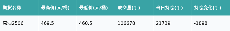 南财智讯5月7日电,南财金融终端盘后期货数据显示,上期能源的原油主力合约收涨2.27%堆财网,收盘报468.2元/桶,日内资金流出7.98亿元。其他相关指标见下表: